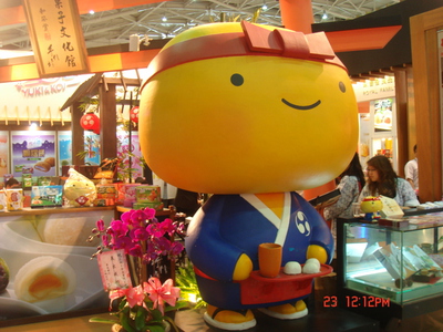 接著逛到日本館剛好看到一個展覽區門前擺著一個超大的日本可愛娃娃,而且還有2位穿著和服的年輕妹妹在那邊發該廠商所生產的日式點心,真的是有吃也有拿。