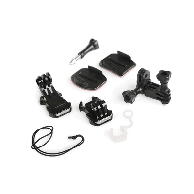 使用固定配件套裝擴展GoPro 固定選件,或將其用作備用或替換固定支架和零件。隨附曲底粘附固定底座、平底粘附固定底座、快卸扣、垂直快卸扣、翼型螺釘、三向轉換支架、鎖定插塞和栓帶。