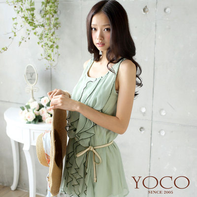 東京著衣-YOCO 配色波浪層次雪紡上衣(共三色)-2013347