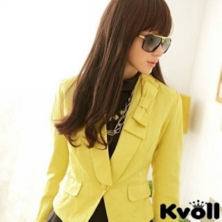 直到網友Michael介紹我上網買了一件【KVOLL均碼特賣】黃色唯美蝴蝶結單扣收腰西裝小外套,想不到品質和剪裁真的和夜市OR路邊攤差很多!!