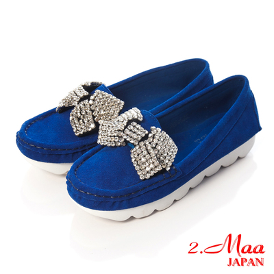 2.Maa 精緻流行新趨勢質感牛麂皮x鑽飾蝴蝶結休閒鞋-藍