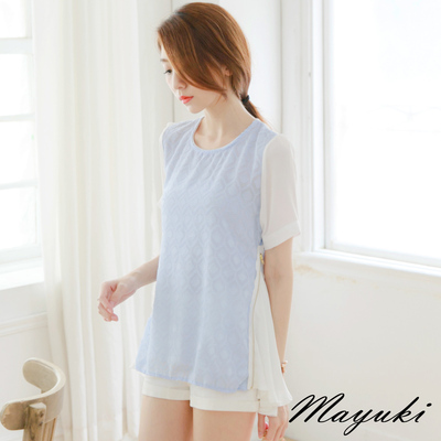 東京著衣-MAYUKI 幾何緹花側拉鍊設計雪紡上衣-S.M(共三色)-4008565