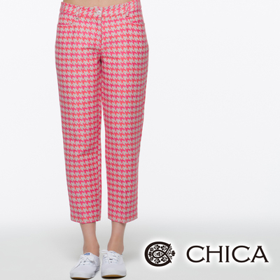 • CHICA 螢光千鳥格挺版九分褲