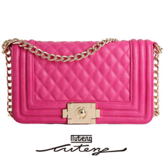 【TU-TENG】時尚基本款真皮鏈帶方包(菱格幸福桃紅)