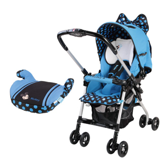 【VIVIBABY】迪士尼手推車+增高墊組(米奇藍-米妮粉)