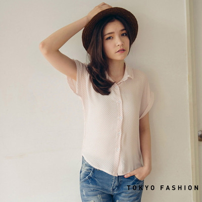 東京著衣 玻璃紗領圓點雪紡襯衫(共二色)