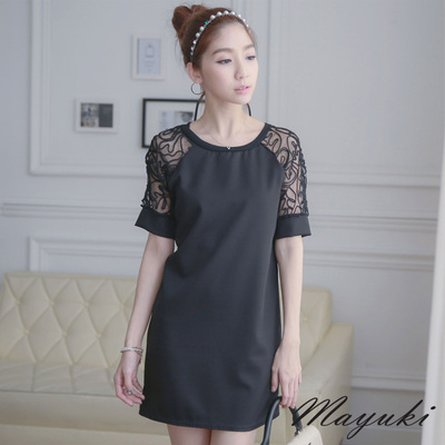 東京著衣-MAYUKI 透肌繡花紗接袖洋裝(共二色)-3028919