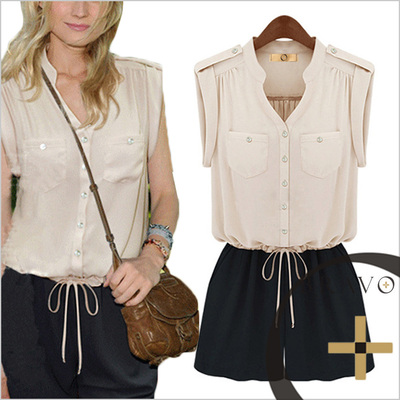 我覺得V領蝙蝠寬袖撞色連身短褲裝 共二色 Bravo不僅穿起來合身舒適,自己感覺也變很有時尚的FU!!(哈哈哈!!!!)