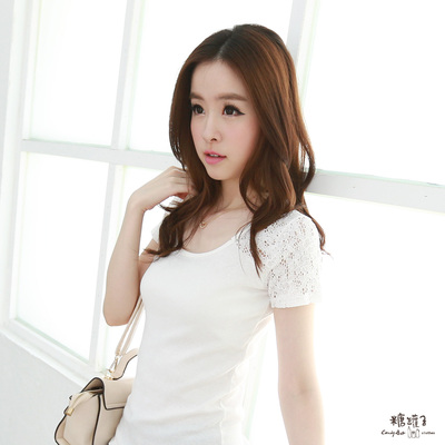 糖罐子-韓品 鏤空蕾絲拼接棉衫(共二色)