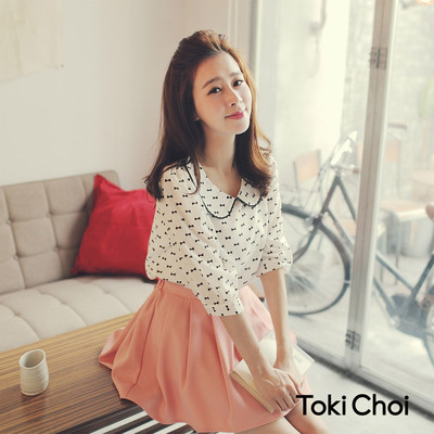 東京著衣 滿版蝴蝶結娃娃領上衣-S.M.L(共二色)-4018171