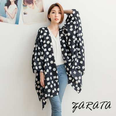 日式幾何圖形下擺不規則罩衫外套(黑色)-ZARATA商品網址: