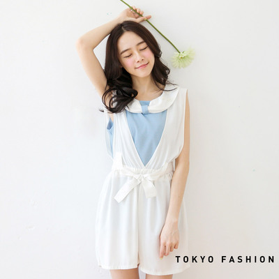 東京著衣 雙V領綁帶連身短褲(共二色)