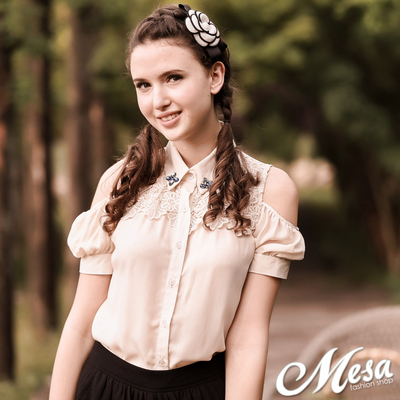 全尺碼OL露肩雪紡上衣襯衫-Mesa