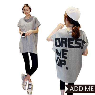 ADD ME 字母圓領短袖長版棉T