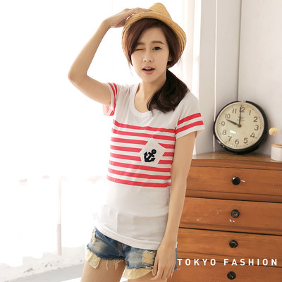 東京著衣 水手風船錨條紋口袋棉T(共二色)