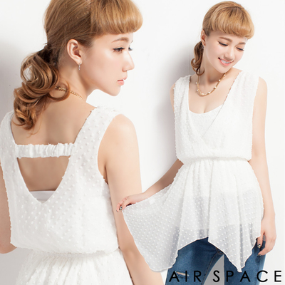 AIR SPACE 點點雪紡V領鏤空無袖上衣(清新白)