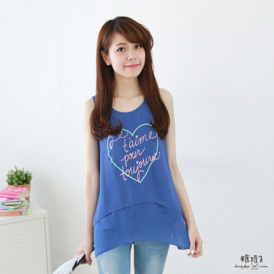 糖罐子-彩花蕾絲愛心字母雙層背心(共二色)商品網址: