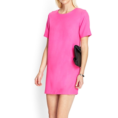 粉色短袖合身洋裝