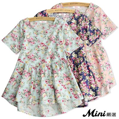 上衣 純棉印花圖案荷葉邊娃娃衫 三色-Mini嚴選