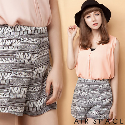 AIR SPACE 圖騰拼接雪紡高腰短褲