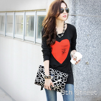 9th Street 愛心挖洞不規著下擺上衣(黑)