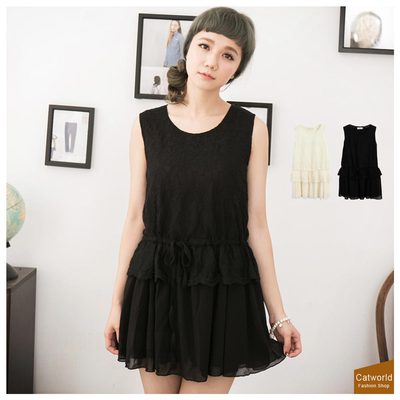 蕾絲拼接雪紡下擺背心洋裝共二色Catworld