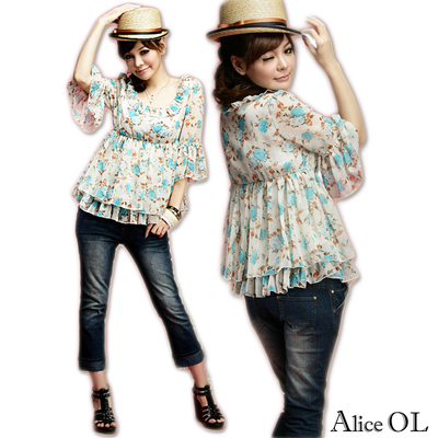 圓領碎花五分袖雪紡上衣(共三色)-Alice OL商品網址: