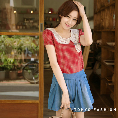 東京著衣 蕾絲領圓點點棉感上衣-S.M(共四色)