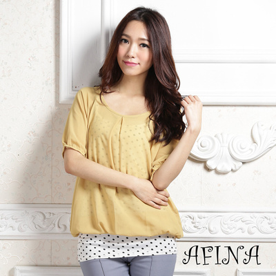 點點背心素色二件式上衣-黃色 AFINA
