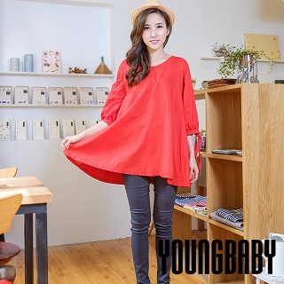 【YOUNGBABY中大碼】正韓 五分袖前片棉麻後棉袖綁帶A字上衣-洋裝(共2色)