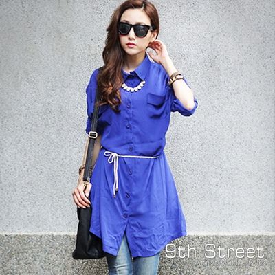 9th Street 早秋新品雪紡口帶長版襯衫