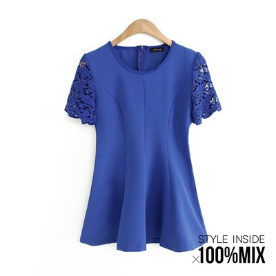縷空蕾絲袖荷葉下擺純色上衣 多色 全尺寸 共三色 100%MIX