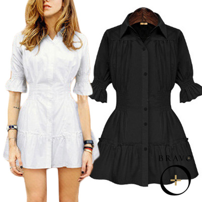 法式皺折鬆緊收腰純色洋裝 共二色 Bravo商品網址: