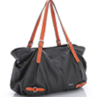 【Milla?Janes米拉.珍妮絲】義大利小牛皮 全真皮裁剪 雙色皮革 兩用南瓜包/肩背包/斜背包(橘黑)