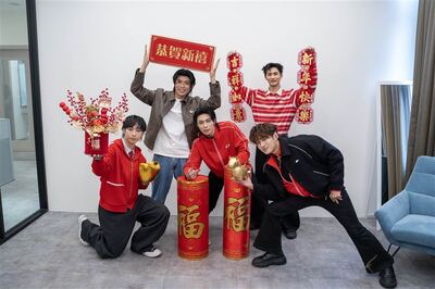 FEniX曹家齊(左起)、陳峻廷、MAX、夏浦洋、李承隆。(圖/Hit Fm聯播網提供)夏浦洋過年期間多在家靜養,讓剛動刀的腳好好休息,等不及開工後跟團員們練舞。陳峻廷說去年跑了許多通告與作品宣傳,過年終於可以喘口氣。曹家齊花了許多時間在電玩上面,讓自己好好放鬆。MAX則是與家人享受美味年菜,每天吃飽、睡好覺。李承隆和往年差不多,但今年有9天年假,有點想念FEniX的每個人,想要趕快開工。