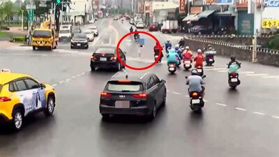 真的是「行人帝王」自帶結界!高雄市三民區同盟一路與自由一路口,25日下午出現一名男子無視紅燈、手撐傘,並低頭猛滑手機在斑馬線上「太空漫步」,逼得現場近20部汽機車為了禮讓這名男子,只能在綠燈通行時集體緊急煞停「瞬間定格」,畫面曝光後引發網友炸鍋開酸「是吃了無敵星星嗎?」對此,三民一分局檢視影片後確認行人已違反道交條例,將循線通知到案,並開出一張500元的罰單。