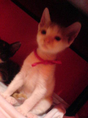 然後因為...養了5隻貓負擔太重嚕!我就把兩隻大的兩隻小的送人養嚕!> " <
