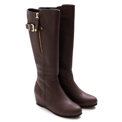 ETMall東森購物網【GP bird 波兒德】完美顯瘦金屬皮扣質感雙拉鍊內增高馬靴-黑色、淺咖啡