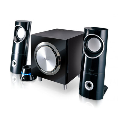 KINYO 2.1聲道線控立體聲防磁擴大音箱KY-6801,採用全木質打造,共鳴效果更佳,具備76mm低音單體喇叭和57mm中高音單體喇叭,聲音表現兼具清亮和強勁,另有獨特的節奏通風口,能控制氣流,讓低音表現更沉穩;具有一多功能獨立線控單體,它具有電源指示燈、音量控制、麥克風和耳機輸入孔,讓您享受方便的線控使用。防磁喇叭設計,不會干擾您的電腦螢幕,整體為黑色設計,時尚典雅,單純好搭配。