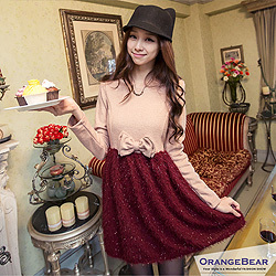 ob嚴,ob嚴選,ob嚴選品牌旗艦店 OB嚴選更顯魅力~蝴蝶結混呢料毛海連身洋裝?2色』