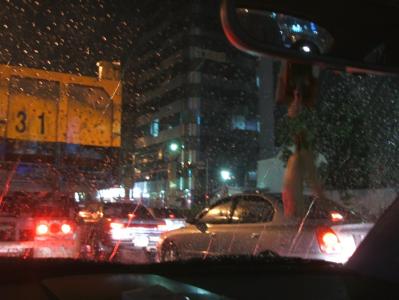 晚上十點下樓去想去隔壁泡湯 看到下好大的雨 沒有開閃光燈在拍,看起來是還好 然後往隔壁的溫泉館走走哇.. 人孔蓋冒出2道水柱好壯觀 可見地下排水道已經滿水位了正好有車駛過 再拍近一...