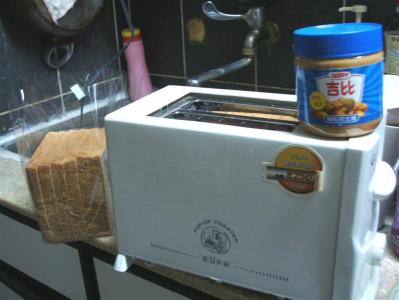 最近早餐迷上了吃花生醬吐司 所以已經好幾天沒去早餐店光顧了...呵比較省錢 話說昨天要來去買全麥吐司 厚...樓下的麵包店小小一包要價50元...走遠一點去另一家...呵!48元 數一數總...