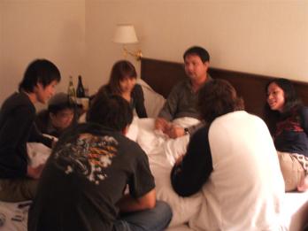 然後大家就打牌~~~打屁~~~喝酒~~~玩遊戲~~~一直很怕我們笑鬧得太大聲,還好房間是邊間,所幸一整晚都沒有人來罵我們太吵