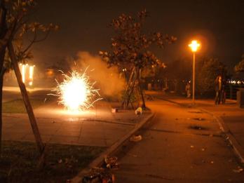 照片是半夜1點多的時候去關渡宮去放炮...炮聲好大~~~