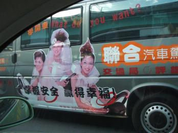 塞車的當兒看到這個駕訓班的廣告,我先是看到中間那一個新娘造型的模特兒眼睛大到真是難看,再看,原來是駕訓班的廣告...呵...CATCH滿好笑的