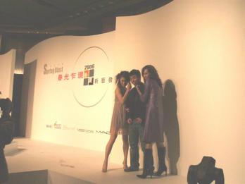 好不容易到了要遠企飯店三樓,看老闆還沒到,我趕快開始化舞台粧,測試一下要投影的檔案,然後背講稿...十點的時候就開始排練;只見四位模特兒上台開始走台步,老闆輕輕向我說聲:哇...怎麼長得這麼醜啊...