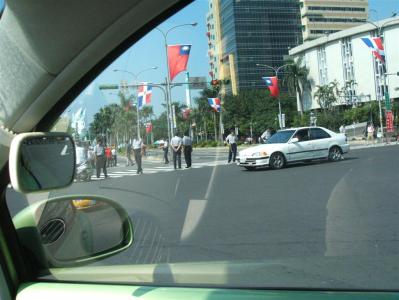 看到路邊不少參加遊行的民眾了,大都載個棒球帽,有的手上還拿著立法委員的旗子,或拿的是挺扁的旗號,有一個老太太看起來還有一點令人懷疑她可以走那麼久嗎?