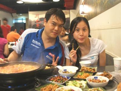 照片是今天晚上和我一起去吃川巴子火鍋的龜友酒色夫和tinkerbell一對優秀的年輕人~~~由於他們具有清新健康的形象,非常適合作為本台的招牌...呵