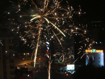 就在大樓的樓下有人拿煙火在放,好近啊!!!