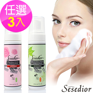 ?Sesedior玫瑰潔顏慕斯(200ml/瓶)x2+Sesedior綠茶卸妝潔顏油(200ml/瓶)x1